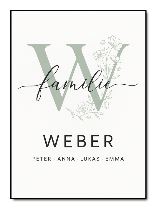Letter Flowers Familie - personalisiertes Poster